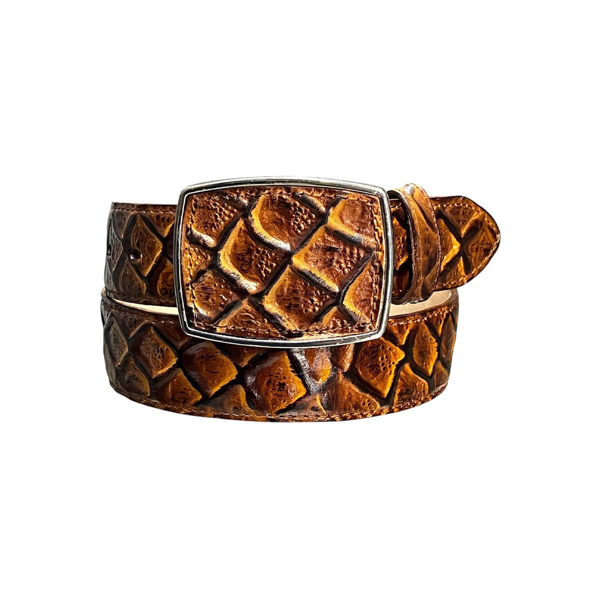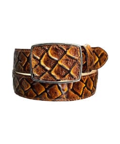 CINTURON HECHO EN UNA TIRA, GRABADA EN PIEL VACUNA, PROPORCIONANDO ALTA RESISTENCIA Y CALIDAD, A LA VISTA MUY SIMILAR AL ANIMAL.